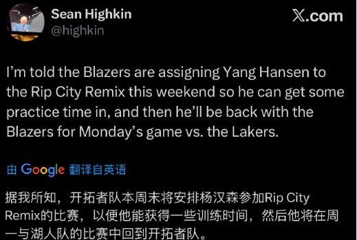 是的,杨瀚森也就下放两天,相当于去发展联盟加班两天,磨练心智,周二就回归。另一名队记Danny Marang更是补充道,如果杨瀚森之后在开拓者获得的上场机会不多,他将频繁往返于开拓者和混音队。